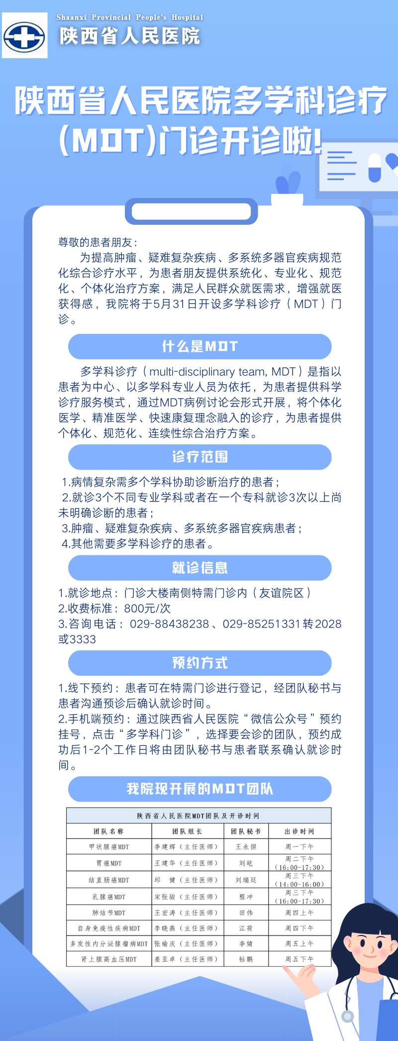 将于5月31日开设多学科诊疗(MDT)门诊。