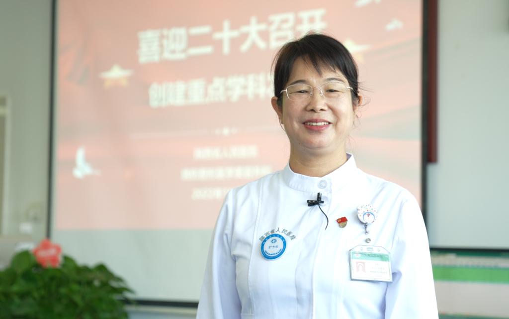 我们临床护理人员,要把学习贯彻党的二十大会议精神转化成为患者服务的动力,提高人性化的服务意识、敏锐的疾病观察能力,以精湛的临床护理技术,凝心聚力为更多百姓健康保驾护航。