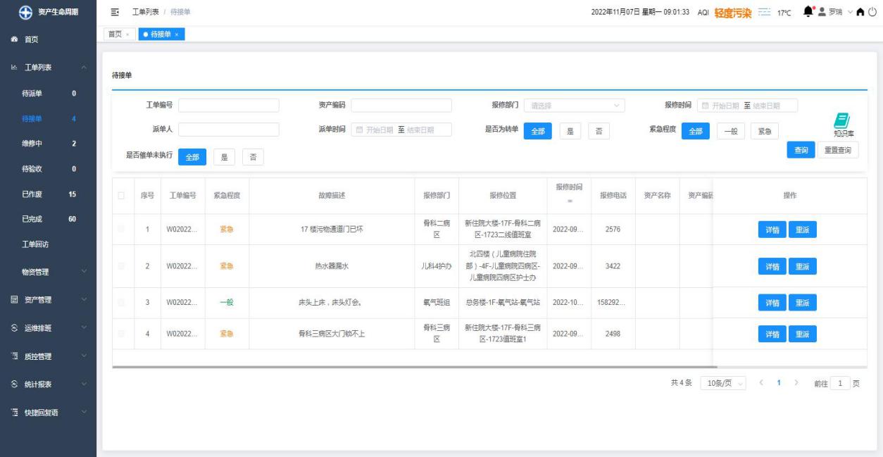 “智慧后勤一站式运维平台”的组建,将维修保障服务、物资供应服务、安全保障服务、设施设备运行监控和维保等服务通过物联网、大数据连接,实现了“可视化、数字化、精细化”管理,助力医院后勤管理水平和医院服务品质的提升,为智慧医院建设发展提供了有力保障。