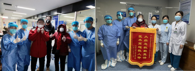 自国家新冠疫情政策调整以来,医院的阳性病人与日俱增,重症患者更是增多,急诊内科抢救室床位每天都处于紧张的超负荷运转状态,每日科室40名左右阳性医护人员带病上班,科委会5人全部感染,在刘丹平主任的带领下全部未休假坚守工作岗位。科室按照医院工作安排部署,从12月15日EICU开始收治新冠阳性重症患者,在EICU恢复运行的两天时间15张病床迅速收满各种阳性危重症病人,12月22日一名重症患者痊愈出院,家属为表示感激之情送来大红的锦旗一面,上面写着“大疾急救献真情,医术高超救人命”。