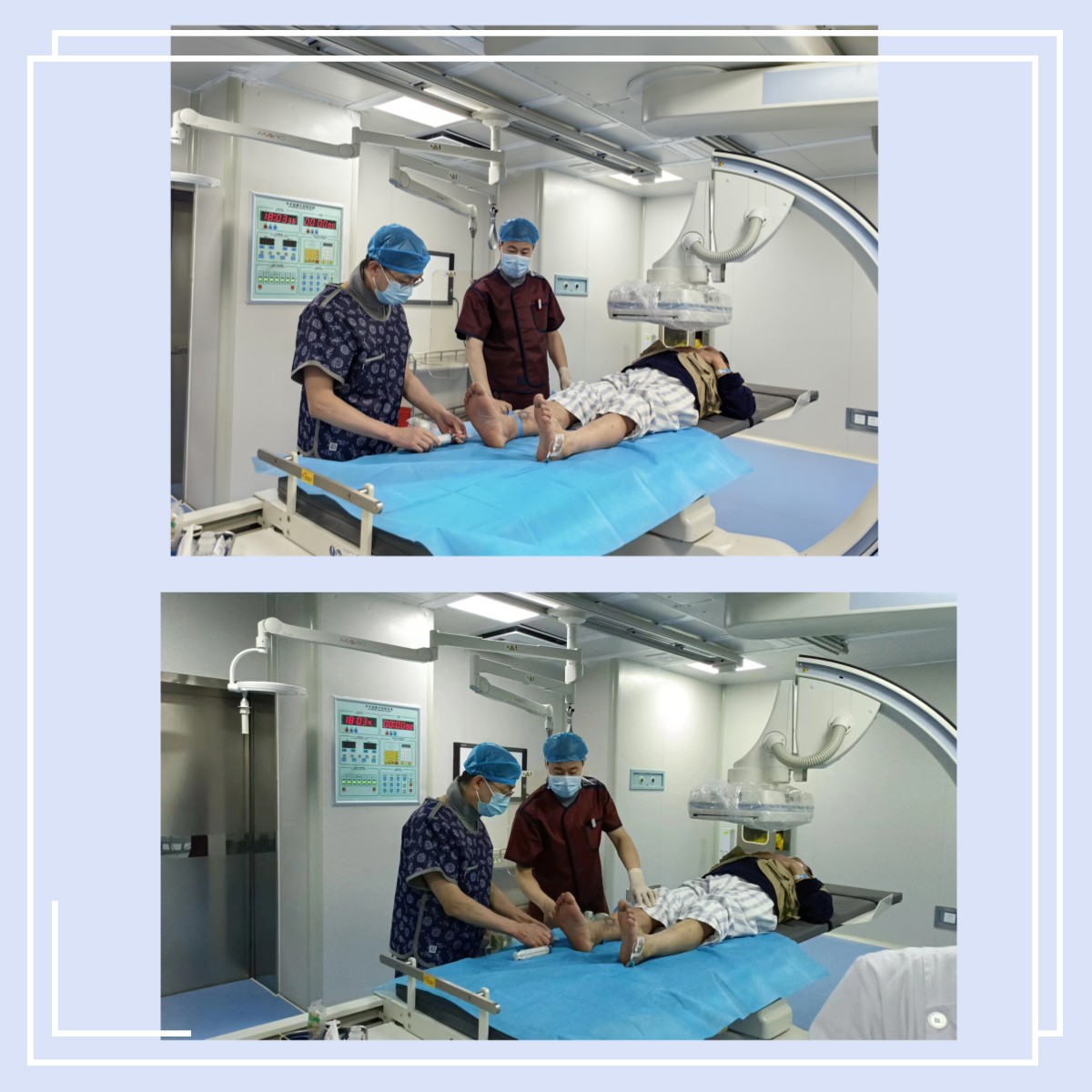 会后,3名队员立即进入帮扶科室开始工作,分别进行了科室大查房,重点对疑难、危重及治疗作用不佳的患者进行了讨论和分析,将理论和实践相结合,应用到基层医院诊治当中。蒋锋副主任医师早查房时,就内一科疑难患者的诊治做了深入剖析。张炜副主任医师在教学查房的同时,高效积极开展新技术新业务,会诊外科一位下肢静脉曲张需手术治疗患者,与蒋锋副主任医师对患者进行双下肢静脉造影检查,开创华阴市人民医院首例下肢静脉造影先河,取得了预期效果。穆志龙主治医师在儿科开展业务学习工作,进行了《儿童肺炎诊疗知识》业务培训,并于次日下沉基层开展教研及义诊活动,受到了受援科室、患者及当地群众的好评。