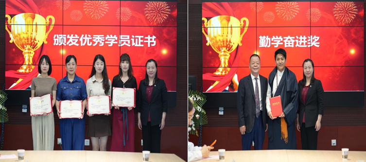 在闭幕式尾声,学员们为表达感恩,为基地献上“精心培育传技能,受益终身感师恩”的牌匾以及锦旗和花束,西藏阿里地区人民医院的学员次旺顿珠献上了代表圣洁、吉祥和祝福的哈达。