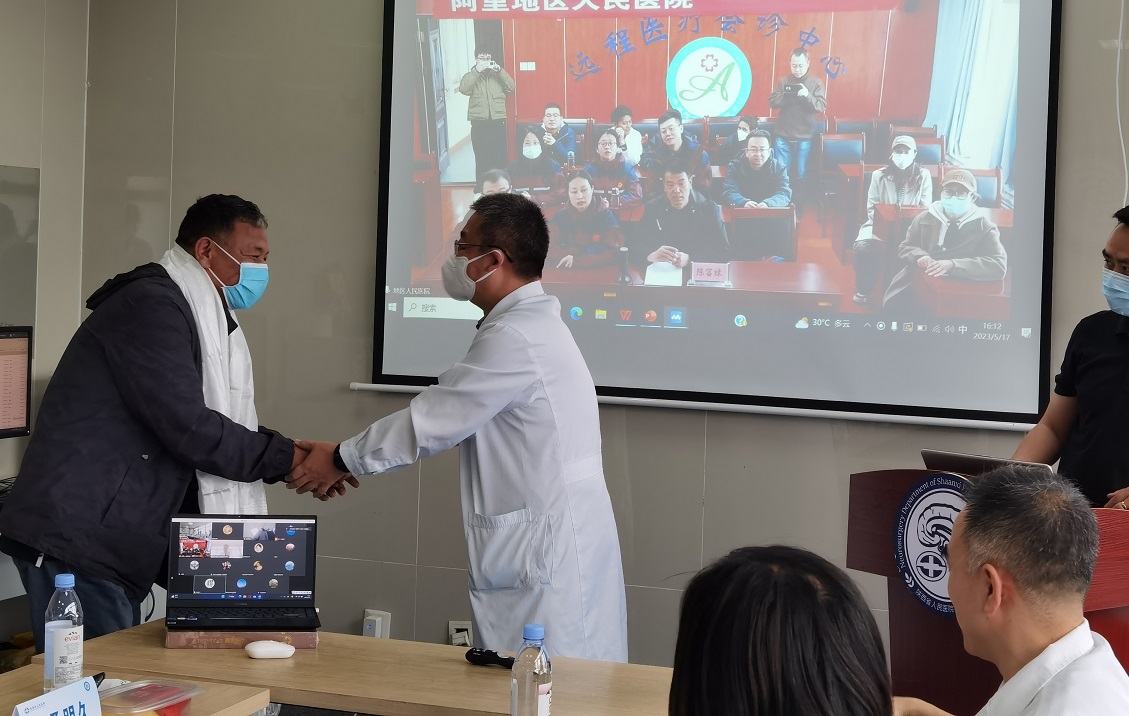 王建华副院长、阿里地区人民医院陈富禄副院长参会致辞,并特邀正在西安考察的阿里地区人民医院外科主任贡桑明久来欧美视频
