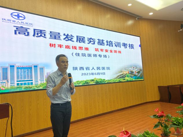 为贯彻落实《全面提升医疗质量行动计划》(2023-2025年),按照医院2023年医务人员培训考核实施方案,6月9日下午,医务处、法务处联合人事处举办高质量发展夯基分阶培训。王建华副院长、医务处、法务处、人事处和全院300余名住院医师全员参加,医务处李晓晴副处长主持。
