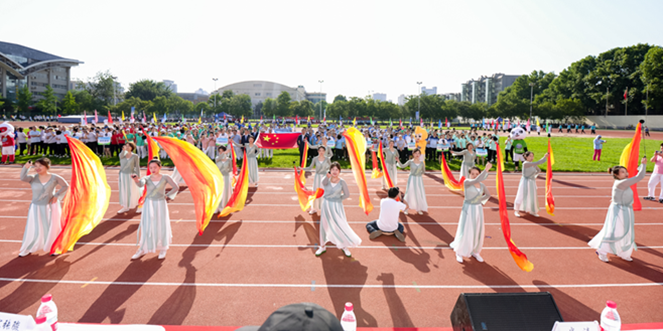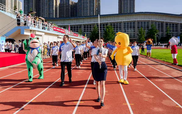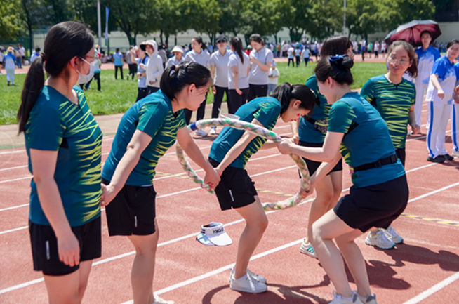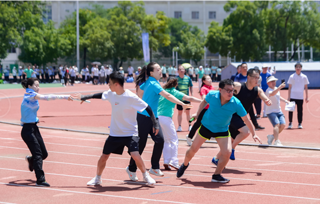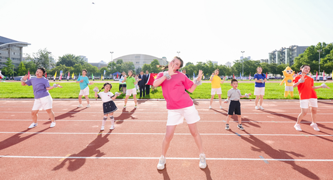 正式比赛前,全体运动员一起进行了热身运动。本次运动会的12项竞赛项目中,有展现运动健儿快步如飞的100米、200米等短跑赛事;有角逐运动员耐力体力的(800)1000米等中长跑赛事;有展现团队合作精神的4×100米接力、跳长绳比赛;有较量运动员综合素质的跳远、抛实心球等赛事。同时,为了增加趣味性,大会还特意设定了4项趣味游戏竞赛,参赛选手可尽情地在绿茵场上一展风采。