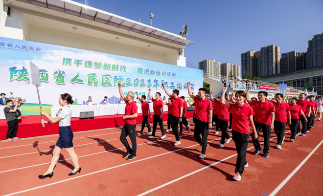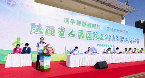 “携手逐梦新时代,奋进省医谱华章”——2023年职工运动会在西安体育学院火热举行。省卫生健康委员会党组成员、副主任、一级巡视员赵岚,院领导班子成员出席,全院28支参赛代表队及观赛职工等1200余人参加。大会由副院长王建华主持。