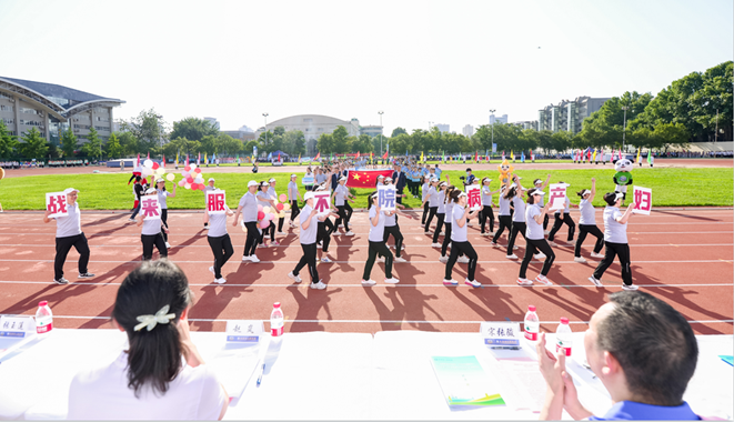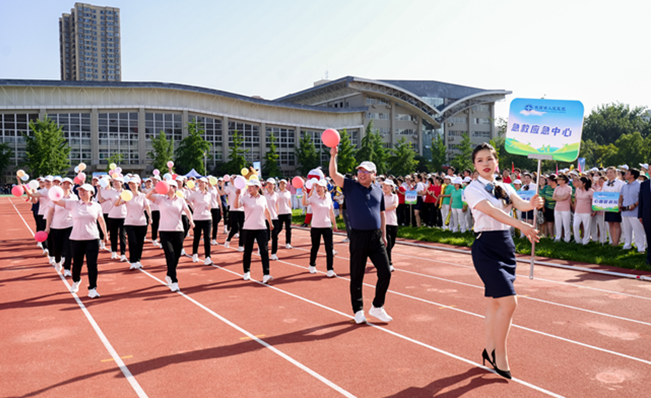 上午8点,伴随着运动员进行曲,国旗护卫方阵踏着激昂的旋律,庄严入场。彩旗方队、裁判员队、各运动员代表方队依次走过主席台接受检阅,气势昂扬、朝气蓬勃。武术、太极、啦啦操等独具特色的方队表演引来一波高潮,热情的表演、矫健的步伐展示着省医人奋发有为的新时代风采。
