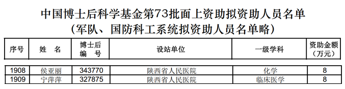 近日,中国博士后科学基金会公布了第73批中国博士后科学基金面上资助人员名单,欧美视频 侯亚丽、宁萍萍2位博士后获资助。本次是欧美视频 博士后招生以来首次申报中国博士后科学基金,取得了50%资助率的好成绩。