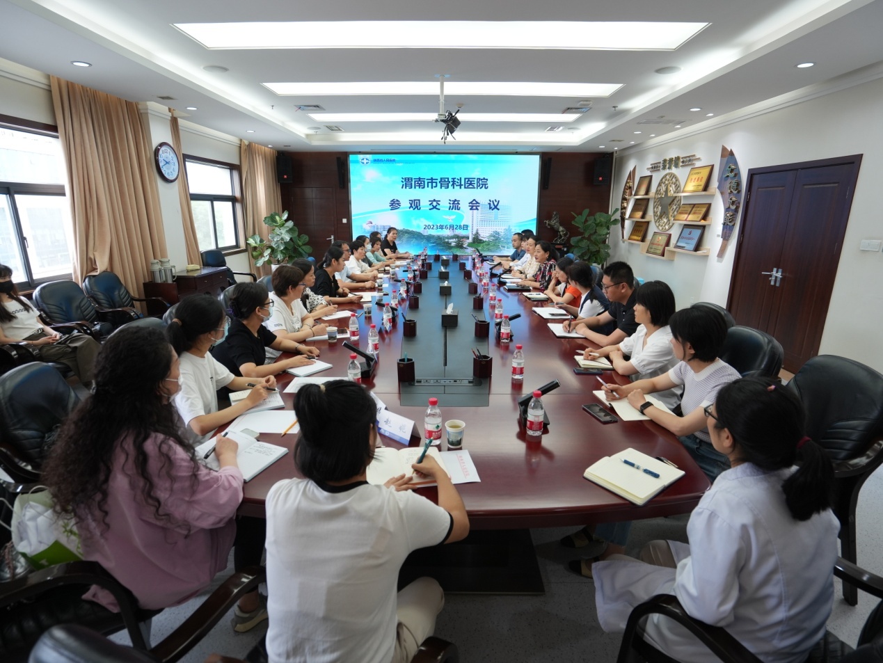 6月28日上午,渭南市骨科医院一行13人在工会主席董晓萍的带领下来欧美视频 参观交流。院办、党办、医务处、护理部、院感办、药学部、法务处、医学装备部等相关部门参加会议。会议由院办副主任白静静主持。