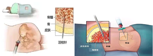 骨髓活体组织检查即骨髓病理性检查,简称骨髓活检,是用一个特制的穿刺针取一小块大约0.5~2厘米长的圆柱形骨髓组织来作病理学检查。是观察骨髓组织结构和空间定位,补充骨髓涂片检查的一个有效方法,尤其对于怀疑骨髓增生异常综合征、原发性或继发性骨髓纤维化、再生障碍性贫血、骨髓转移癌、多发性骨髓瘤、多毛细胞白血病、增生低下型白血病及骨髓硬化症的诊断具有重大意义。