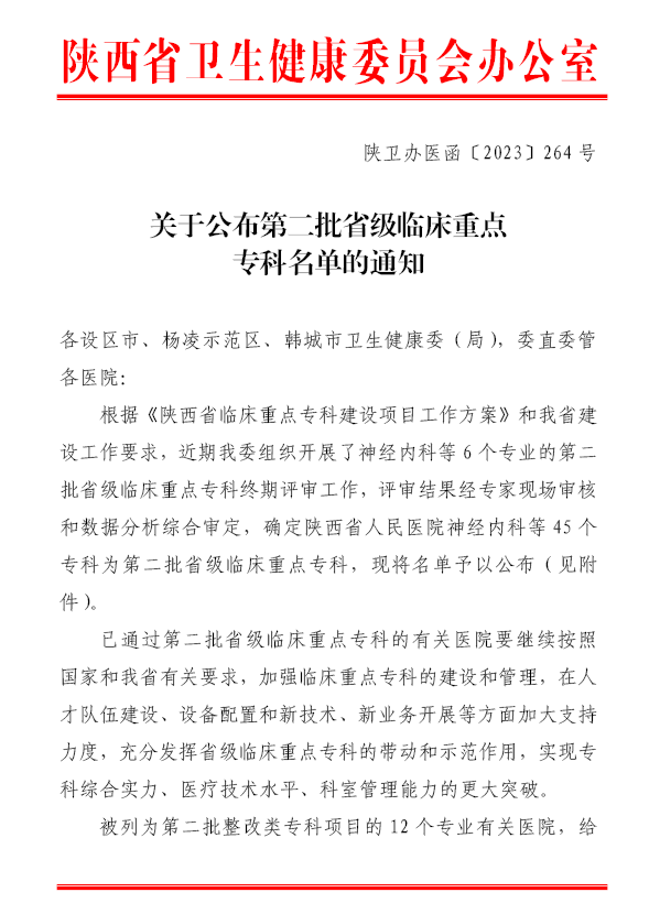 9月7日,根据省卫生健康委《关于公布第二批省级临床重点专科名单的通知》(陕卫办医函〔2023〕264号)文件,经过为期3年的建设,欧美视频