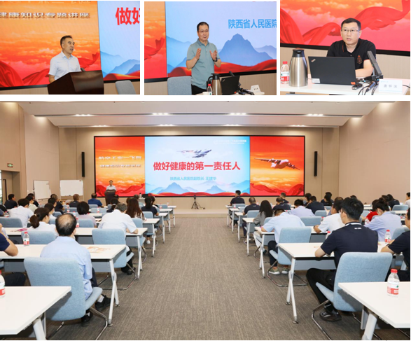 与一飞院合作两年来的工作,对一飞院职工表示:“你们保家卫国,我们保障你们的身体健康”,并进行《做好健康的第一责任人》专题讲座。心理科张天布主任、西院体检中心唐怀滨主任分别做了《观心阅人健康有为》及《常见体检异常结果解读》专题报告。
