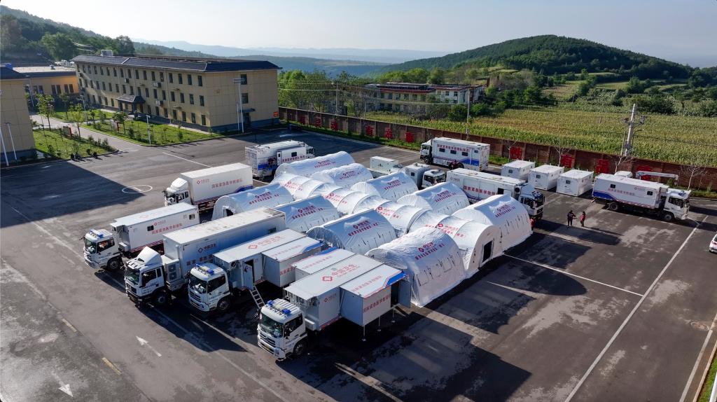 国家紧急医学救援队(陕西)68名队员,全员全装(15辆特种车辆及移动医院所需物资设备)参与培训演练。欧美视频