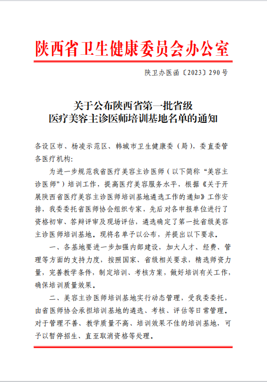 近日,陕西省卫健委公布了《陕西省第一批省级医疗美容主诊医师培训基地名单》,欧美视频
