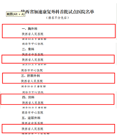 胸外科、骨科、肝胆外科、妇科、泌尿外科等5个专业获批陕西省加速康复外科首批试点医院。