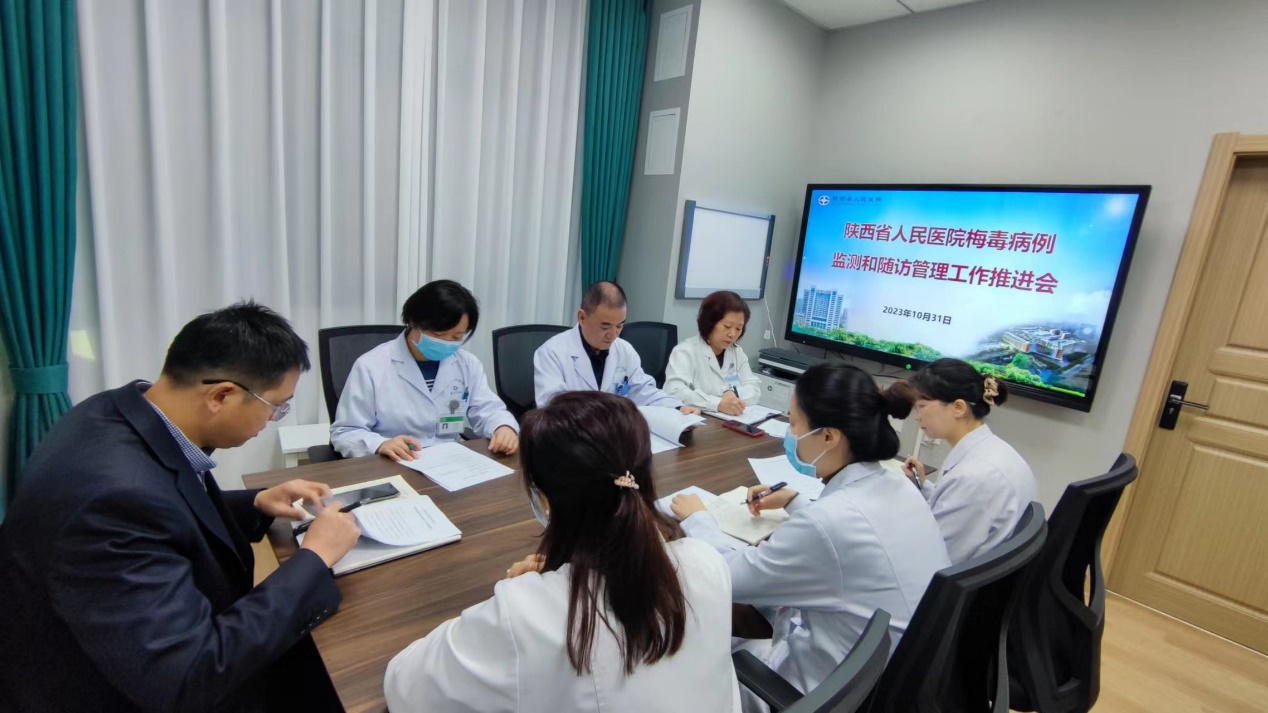 会上,皮肤科杨励副主任解读了《陕西省皮肤性病防治所关于开展梅毒病例监测与随访管理工作的通知》,对梅毒病例监测和随访管理的职责分工、工作内容、经费保障、质量控制、目标任务等进行了培训。与会人员围绕科室协调、实验室检测及治疗、调查问卷填写以及样本留存等流程问题以及如何落实好梅毒病例监测和随访管理工作进行了充分研讨和交流,提出了具体的工作建议和落实措施。