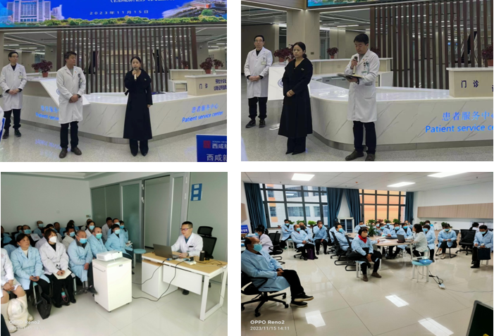 与西咸新区社会事业服务局充分沟通下,按照《西安市卫生健康委员会关于印发2023年度乡村医生培训工作方案的通知》(市卫发〔2023〕79号)文件要求,结合西咸新区实际,由医务处、教学处、西咸院区业务管理部共同研究为乡医量身定制培训详实内容。按照11个乡镇卫生院划分,同时在西咸院区11个科室进行基层常见病、多发病诊疗常规、常见急危重症的快速识别与处理等理论培训及实践操作。