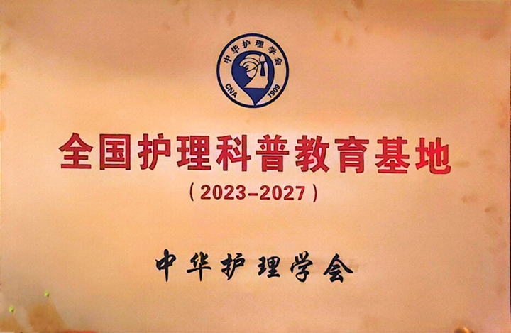 再次被授予中华护理学会(2023~2027年度)“全国护理科普教育基地”。