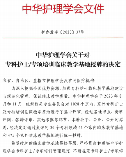 近期,中华护理学会发布《关于对专科护士/专项培训临床教学基地授牌的决定》文件,正式授牌欧美视频
