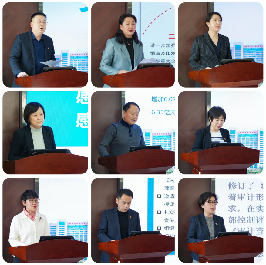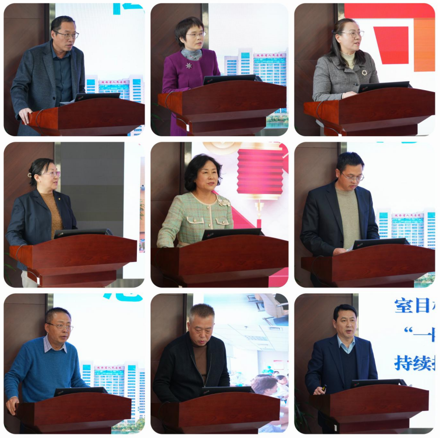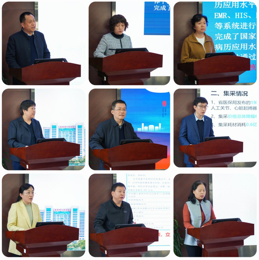 岁回律转,万象更新!2023年在院党委和班子的坚强领导下,凝心聚力、锐意进取,铆足干劲、迎难而上,倾尽全力全面贯彻落实医院高质量发展方案和五个细化方案!在忙碌奋斗中时间总是过得飞快,转眼又到了总结盘点的时刻!在党委和党政主要领导的指导安排下,经过院办前期的充分筹备,1月11日下午,组织召开2023年度行政管理及党建工作述职大会。全院行政处室、部门、专项工作办公室、各党总支共38个一一上台,在4分钟时间内汇报创新、亮点、增量工作,兼职支部书记同时增加2分钟汇报支部工作,并进行满意度互评。党政领导班子全体成员、总支书记、行政处室部门正、副处长、助理、科长、总护士长参加。宋张骏院长主持。