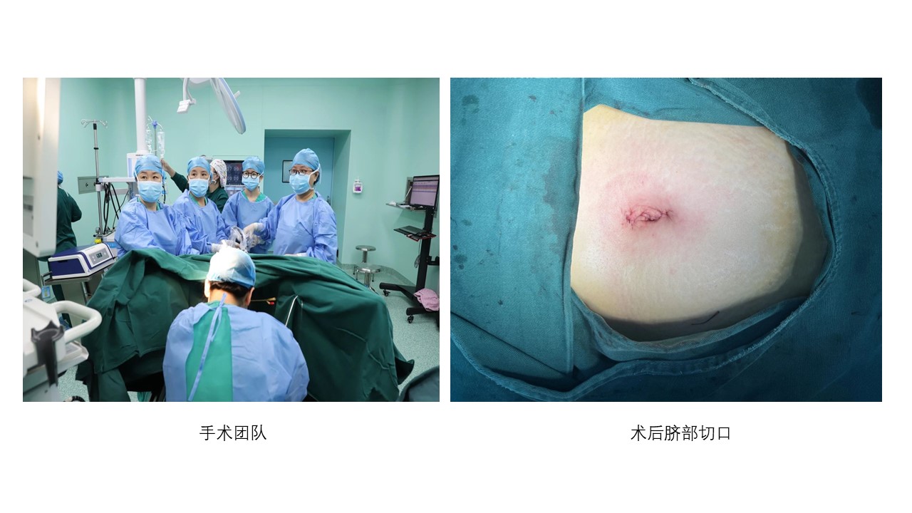 患者子宫肌瘤逐渐增大需要手术治疗,术中见子宫后壁有一大小约6×5cm的肌瘤,肌瘤完整剔除后镜下缝合子宫,肌瘤标本自脐部切口将标本取出,术程顺利,术中出血约20ml,术后恢复良好,患者已康复出院。