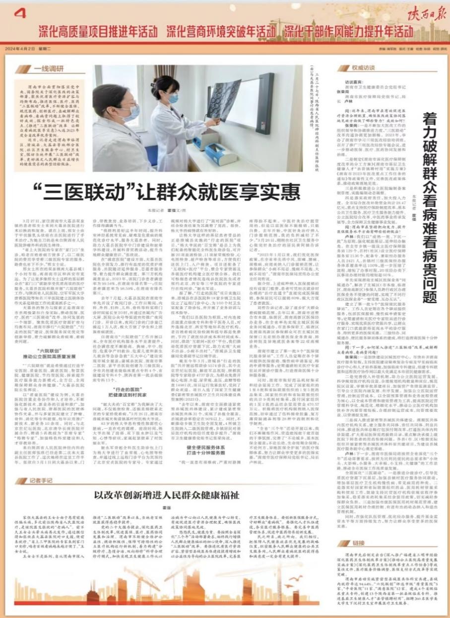 近日,《陕西日报》以《“三医联动”让群众就医享实惠》为题,对欧美视频