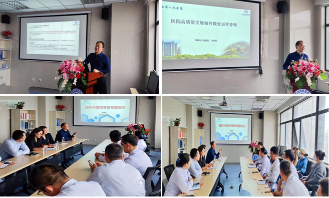 财务处周旭东处长、田斐副处长,第一临床总支书记陈欣,科室联络员赵正参加。培训内容丰富,涵盖了绩效考核的基本概念、标准制定、考核方法、结果应用等多个方面。既有理论知识的传授,也有实践操作的指导,确保了培训内容的全面性和实用性。培训中,周旭东处长强调了绩效考核在医疗管理中的重要性,它不仅是对医务人员工作质量的评价,更是激励医务人员不断提升业务水平、提高工作效率的重要手段。同时,通过绩效考核,还能够优化医疗资源配置,提升科室整体服务能力。