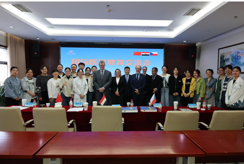 主院区召开,由国家引才引智示范基地、教学处、国际部共同举办。段降龙副院长参加并致欢迎辞,儿童病院名誉院长焦富勇主持。国家引才引智示范基地负责人段降龙副院长向埃及本哈大学医学院院长Mohamed Gamaleldin Abdelhamid Elashhab教授、捷克欧洲中医药中心主席助理Marketa Zelinkova教授颁发了“欧美视频