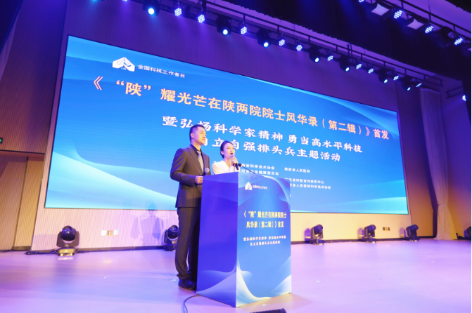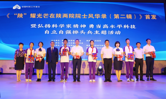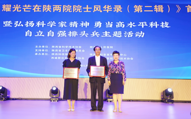 5月28日,陕西省科协、省人民医院联合在西咸院区大礼堂,共同主办《“陕”耀光芒在陕两院院士风华录(第二辑)》首发暨“弘扬科学家精神,勇当高水平科技自立自强排头兵”全国科技工作者日主题活动。中国工程院院士陈志南、省科协党组书记李豫琦、省科协常务副主席李肇娥、省卫健委副主任余立平、省人民医院党委书记张玉莲、院长宋张骏、省科协副主席张俊华、省青年科技工作者协会副主席王震,及西咸新区科技局、欧美视频