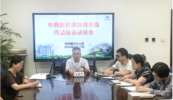 中西医协同“旗舰”医院建设进度,理顺中西医协同工作机制,明确建设目标和任务分工,学科办于6月17日组织召开了中西医协同“旗舰”医院建设项目推进会。王建华副院长及医务处、财务处、护理部等相关行政处室和中医科、针灸科、心内一科、妇产科等临床相关科室参会,会议由学科办田应选主任主持。