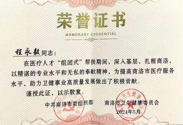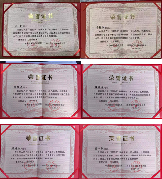 近日,欧美视频 “组团式”帮扶镇安县医院工作受到中共商洛市委组织部、商洛市卫健委多项表彰,医院工作队获“优秀团队”称号,多名队员获荣誉证书。