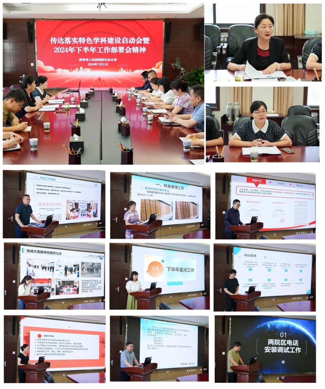 医院特色学科建设启动会暨2024年下半年重点工作部署会吹响了冲刺下半年的冲锋号,党政领导对扎实做好下半年工作作出周密部署,进一步明确了工作目标和任务。7月31日下午,在宋张骏院长安排下,院长办公室迅速召开专题会议,传达学习下半年工作部署会精神,并结合办公室实际,对下半年重点工作作出安排。院办全体成员参加会议,焦丽敏副主任主持会议。