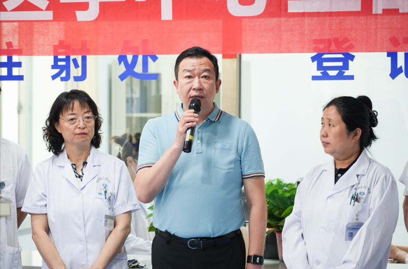 超声医学中心主任刘莉致辞,对长期以来关心支持超声医学中心发展的院领导、相关部门表示衷心感谢,并简要介绍了超声医学中心三部主要开展的业务范围,表示将以此次开诊为契机,进一步加强学科建设,提升技术水平,优化服务流程,努力打造区域乃至全国领先的超声医学中心。