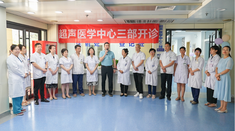 为进一步加强学科建设,不断满足临床业务发展需求,方便患者就诊,提升患者就医体验,在院党委安排部署和院领导高度重视下,8月20日上午,超声医学中心三部在西五楼一楼顺利开诊。宋张骏院长、医务处、护理部、信息处、医保处、学科办、第二临床总支、老年病院各科室负责人、科室联络员及超声医学中心部分人员参加了简单而热烈的开诊仪式。门急诊与医技管理处周延萍处长主持仪式。