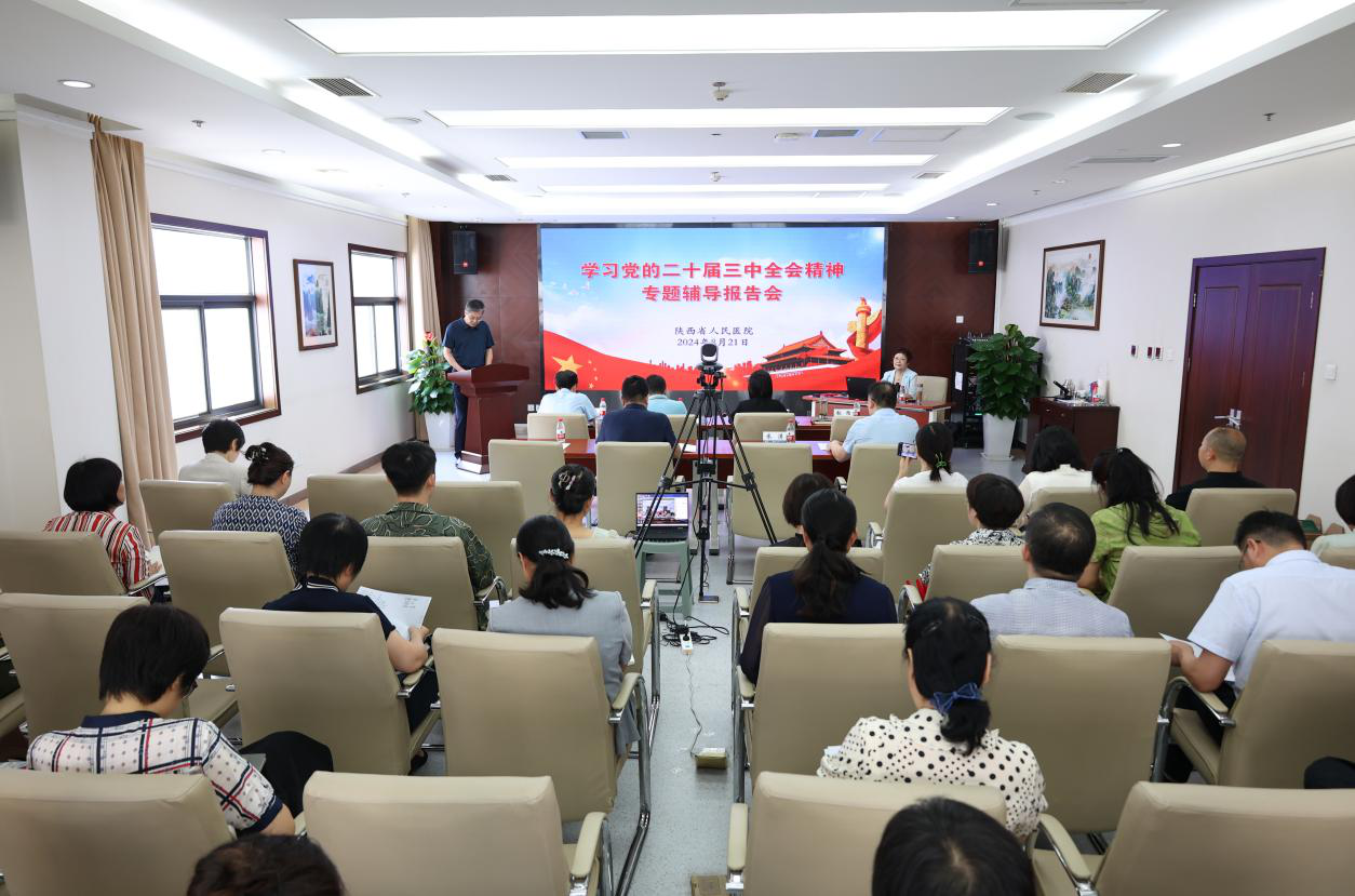 报告会邀请陕西省委党校党史教研部教授闫朦作专题辅导。闫朦以《全面学习贯彻二十届三中全会精神 以进一步全面深化改革推进中国式现代化》为题,从二十届三中全会召开的重要意义、习近平总书记关于全国深化改革的新思想新观点新论断、关于进一步全面深化改革的重大部署和举措、以钉钉子精神抓好改革任务落实四个方面,对党的二十届三中全会精神进行系统阐释和全面解读,报告主题鲜明,视野开阔,内容丰富,深入浅出,对全院党员干部深刻领会、准确把握和全面落实党的二十届三中全会精神很有启发和帮助。