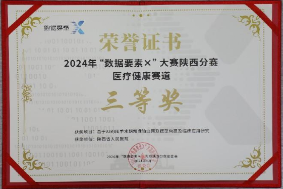 信息处与输血科联合组队参赛。经过激烈角逐,参赛项目《基于AI的围手术期精准输血预测模型构建及临床应用研究》荣获大赛三等奖。