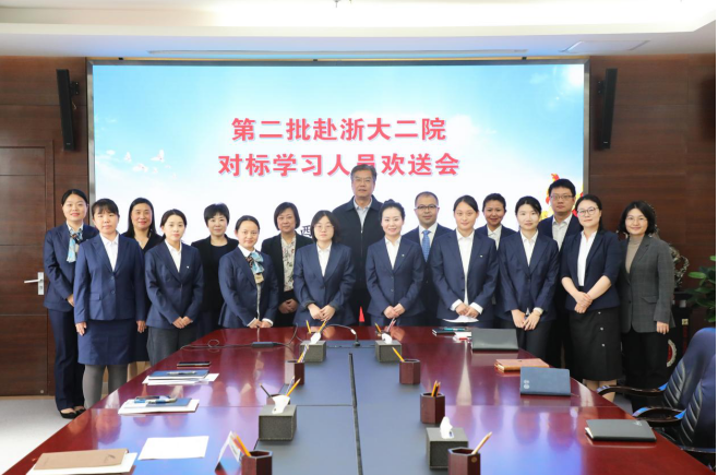 召开第二批赴浙大二院对标学习人员欢送会。党委副书记张路、党委办公室、人事处、医务处、护理部等部门负责人及12名学员参会。会议由党委办公室副主任刘小晋主持。