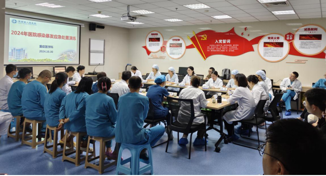 为进一步提高医院对院感暴发事件的应急响应和处置能力,确保医疗质量和患者安全,10月30日下午,2024年医院感染暴发应急处置演练在重症医学科顺利举办。此次演练在分管院领导王建华副院长的部署下,由医院感染管理办公室组织,医务处、护理部、检验科、药学部、部分重点科室院感监控员、重症医学科医护及陕西省医疗救治能力提升项目重症医学专业骨干医师等40余人参加。