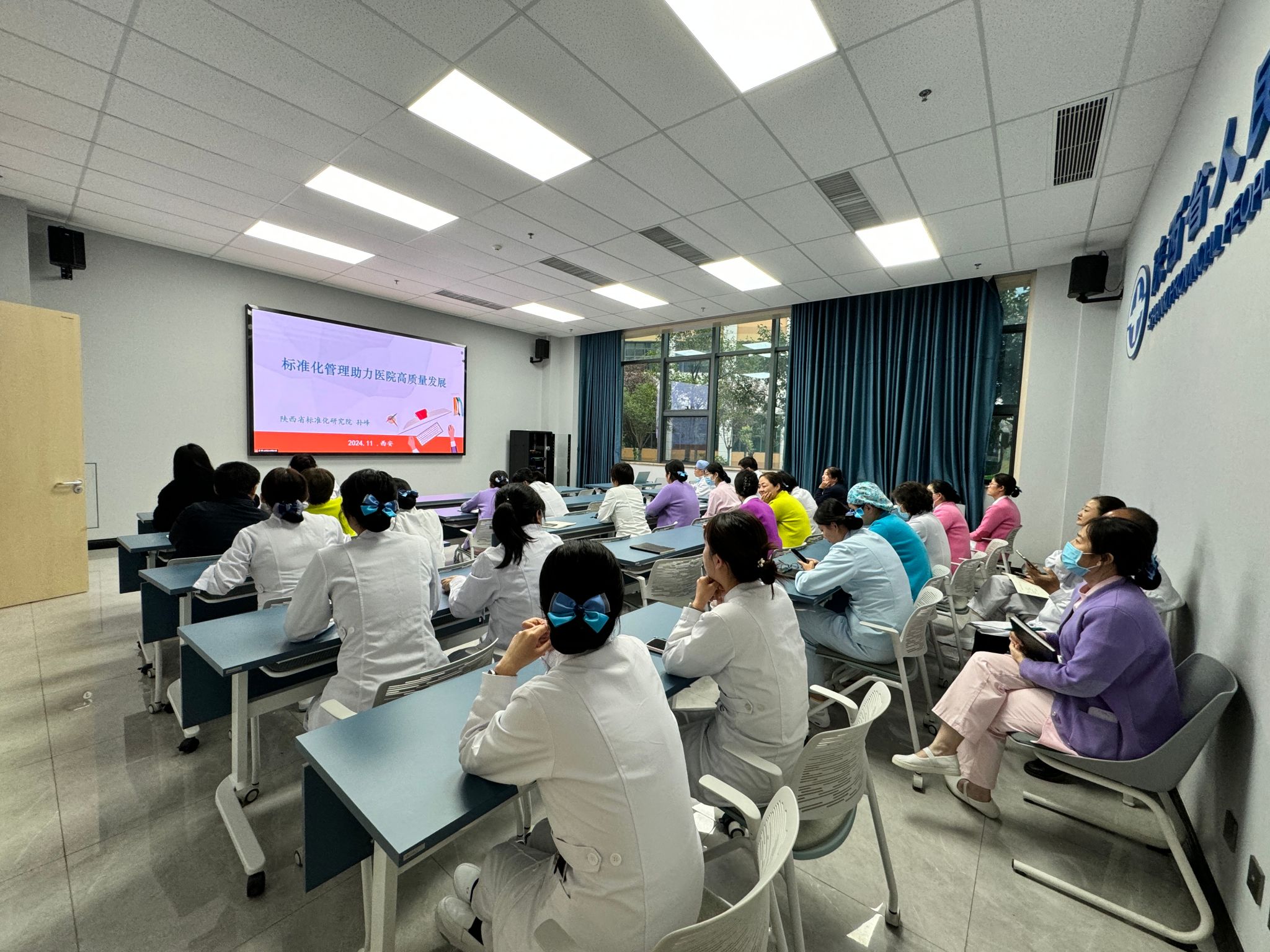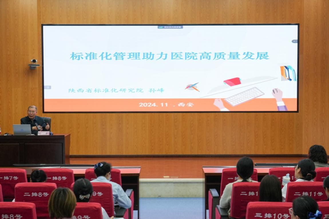 做好标准化建设工作打好基础。11月13日下午,院长办公室特邀陕西省标准化研究院孙峰主任来院做卫生健康标准化管理专题培训,全院临床医技科室主任、护士长,行政职能部门负责人共120余人参加。