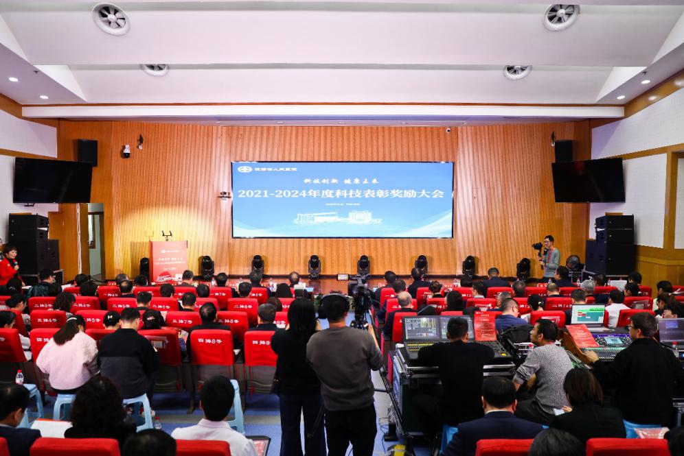 隆重召开2021-2024年度科技表彰奖励大会。会议以“科技创新,健康未来”为主题,全面回顾总结过去三年医院在科技领域取得的突出成就,隆重表彰在科研创新工作中作出杰出贡献的科技工作者。省科协党组书记李豫琦,省科技厅二级巡视员杨世宏,省卫健委党组成员、副主任彭飞,省人社厅博管办主任吉延石及医院领导班子成员出席会议,中层干部、科技工作者代表等500余人参会,共同见证医院这一科技创新盛事。