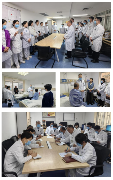 首先,各位专家参加了科室晨交班,并进行疑难病例患者查房观摩指导。神经内三科李锐主任带领科室医护人员对2名疑难病例患者进行查房,一线、二线医师对患者的病情和治疗方案进行了详细的汇报。李锐主任就相关问题进行指导和建议,5位临床专家、刘凌华总护士长及药学部周楠副主任对本次查房的流程、内容、基药情况和护理管理等情况进行了详细的点评,并对科室的医疗救治、人文关怀及院感管理等工作给予了肯定。