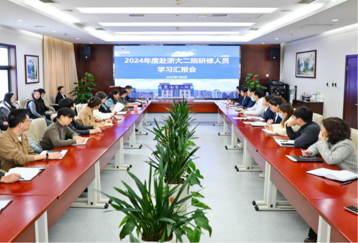 召开首次赴浙大二院研修人员学习汇报会。党委副书记张路、赴浙大二院研修人员及行政职能部门干部职工参会,会议由人事处处长徐强主持。