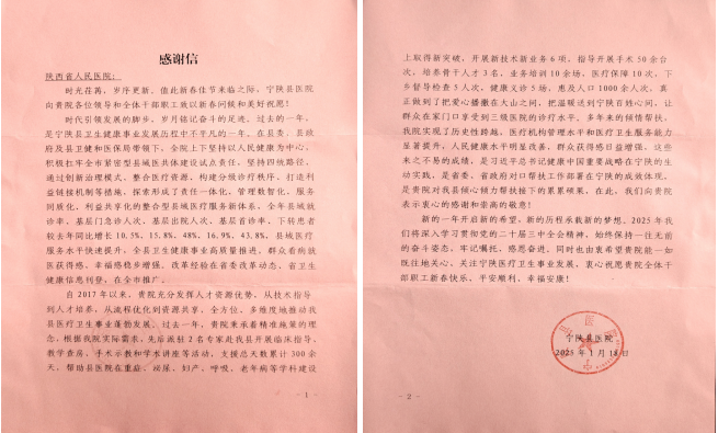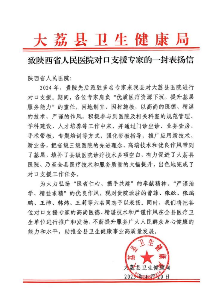 近日,欧美视频 陆续收到绥德县医院、宁陕县医院、大荔县医院等多家受援医院的感谢信、锦旗、铭牌等,各家医院对欧美视频 对口帮扶人员的工作给予高度认可,对欧美视频 长期以来的对口帮扶工作表示感谢!