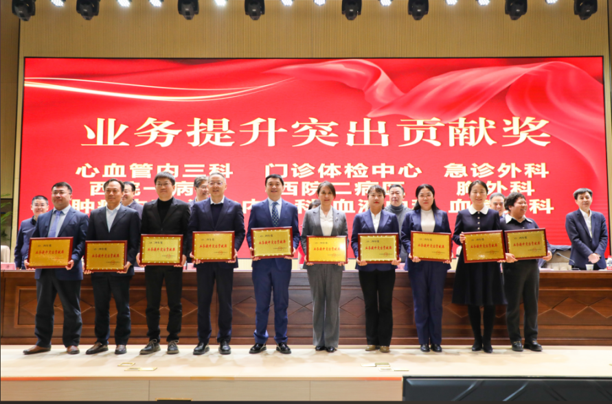 会上,与会人员共同观看了2024年工作总结片《笃行致远启新程》。党委副书记张路解读2024年党建工作,副院长王建华全面分析业务数据,副院长马富春深入剖析医保运行情况,纪委书记王利军通报纪检、审计工作,副院长米涛部署装备和信息工作,总会计师周旭东作2024年财务工作报告。副院长张恩科、段降龙宣读了先进集体和优秀个人表彰决定,大会表彰并为83个优秀集体颁奖,进一步树立了实干为先、实绩为要的导向,激励干部职工在医院高质量发展新征程中展现新担当、彰显新作为。