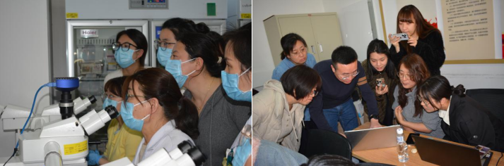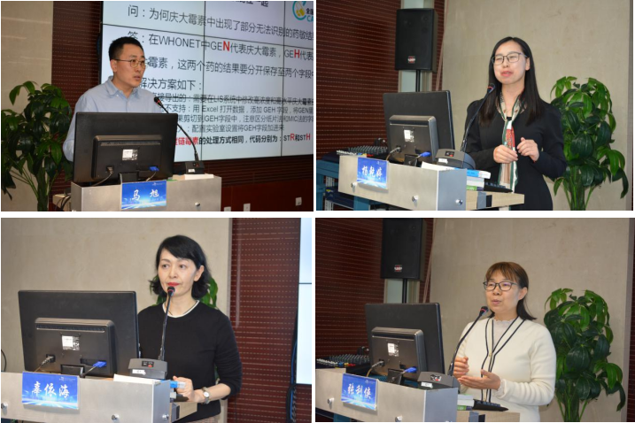 检验科开展。李刚教授带领学员实践操作了WHONET数据录入与分析;随后张利侠主任主持互动答疑环节,学员就日常工作中的疑难问题与专家展开热烈讨论,现场学术氛围浓厚;最后学员分为三组分别学习了病原菌涂片镜检、仪器试剂质控及药敏试验要点等核心技能。