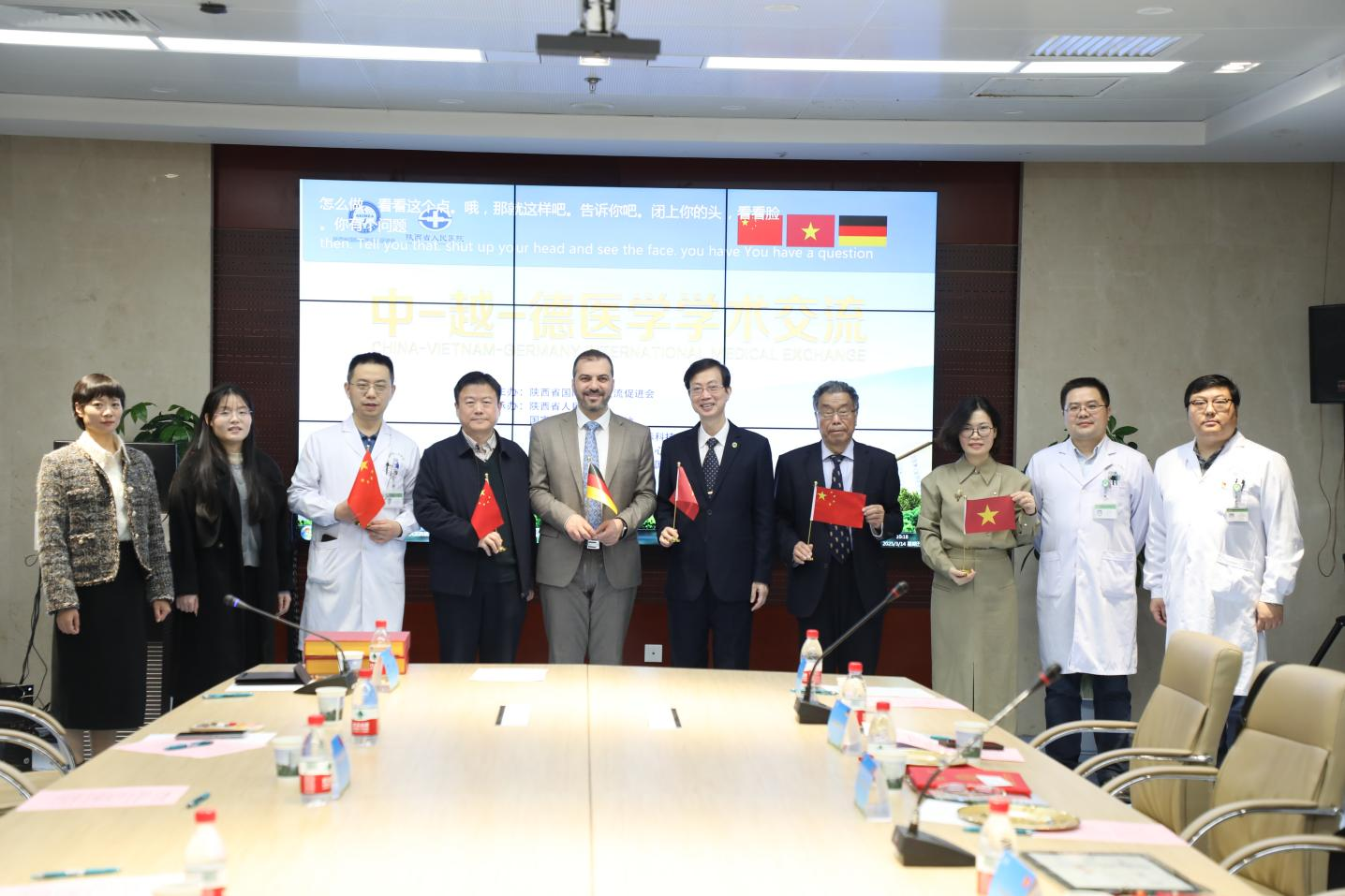 副院长段降龙代表医院对3位教授的来访表示欢迎,并代表基地为越南2位教授颁发证书,陕西省国际医学交流促进会科研部负责人黄亚宁、国际部干事麻菲雯、骨科副主任段大鹏等参会。仪式由儿童病院名誉院长焦富勇主持。