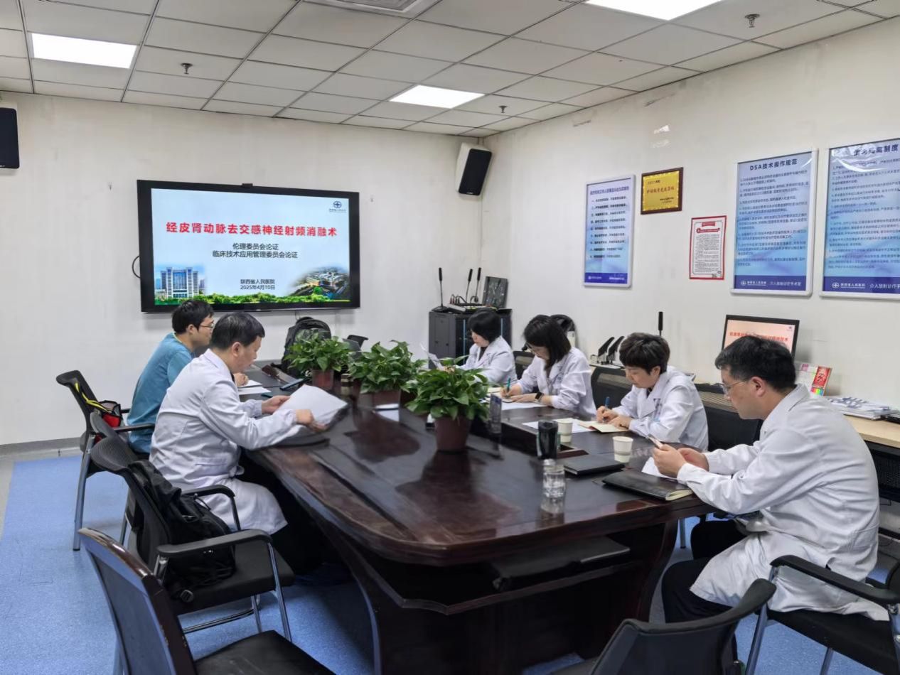 该技术是治疗高血压的新型非药物手段,临床效果显著。鉴于其适应症与排除标准严格,从筹备到实施的窗口期较短等因素,学科办与科研处协商决定优化新技术新业务的审核流程,并创新性地将评审会安排在介入手术会议室,由项目负责人在手术日间隙完成汇报并接受专家质询。最终,技术应用委员会及伦理委员会一致通过,并对技术实施细节给予专业指导。