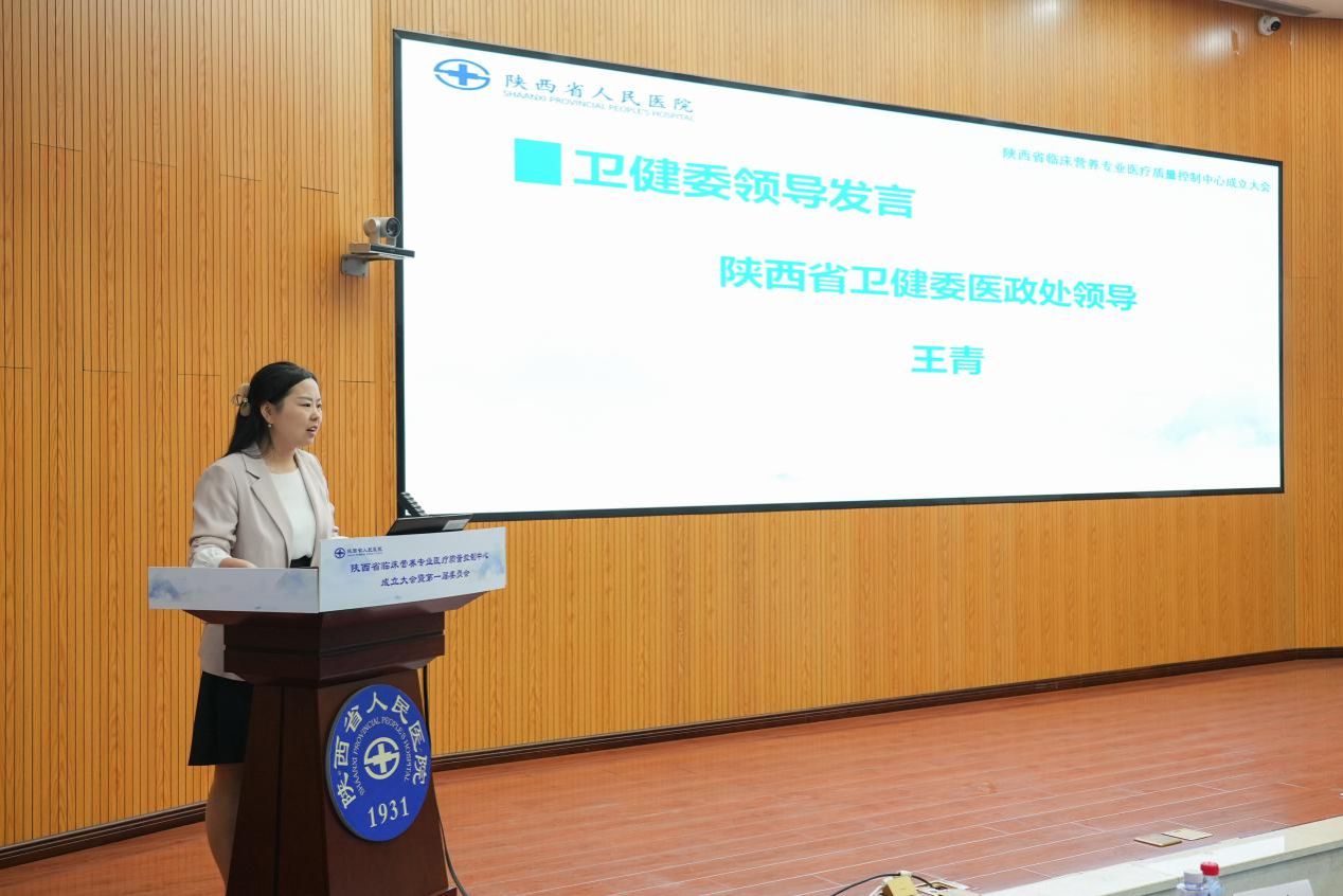会上,陕西省卫健委医政处王青主任科员宣读了批复文件,她表示:持续改进医疗质量、保障医疗安全是国家卫健委重点工作之一,临床营养是疾病综合治疗的重要组成部分,尤其在慢性病管理、术后康复等领域作用显著。此次临床营养专业医疗质量控制中心成立,对于我省临床营养行业的质量控制、学科建设、人才培养、医疗质量服务水平提升具有重要作用和意义。