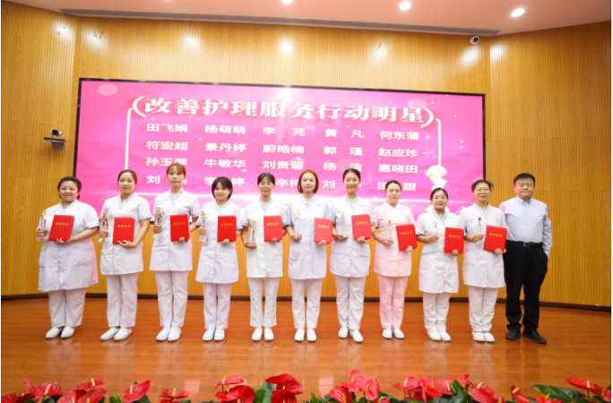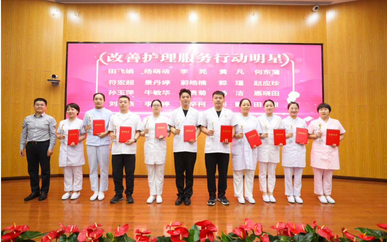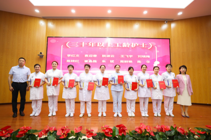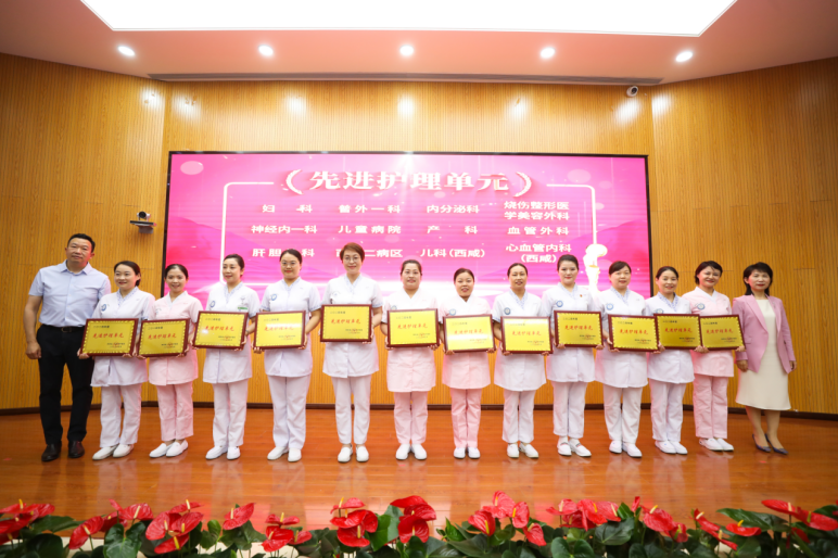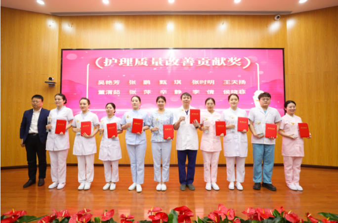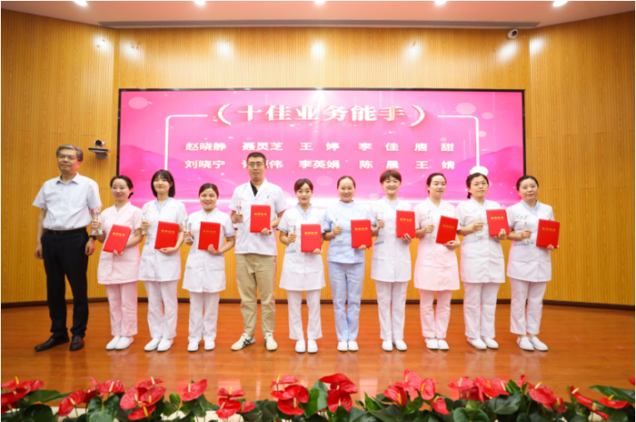 张路副书记宣读了医院关于护理先进集体和先进个人的表彰决定。院领导对“年度先进护理单元”“十佳业务能手”“十佳青年新星”“改善护理服务行动明星”“护理质量改善贡献奖”以及“30年以上工龄护士”等获奖集体和个人进行了表彰,激励全体护理人员再接再厉,再创佳绩。