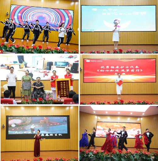 第二篇章“星河共赴·逐梦扬帆篇”由李梦文、张琪主持。王玮护士的叙事案例《每一次守护都是心与心的相拥》深情讲述了护士与患者之间的感人故事,展现了护士在“六个多”行动中的真情呵护和温暖关怀。情景剧《云端守护足下温情》由赵素平、马刚等医护人员生动演绎,通过真实案例改编,呈现了新时代“互联网+护理服务”为患者带来的便捷和专业守护。护士代表王璇的演讲《初心如炬,逐梦前行》讲述了重症医学护理人在专业技术领域的深耕和突破,以及在平凡岗位的坚守与梦想,引发全场共鸣。放疗科于娇副主任的独唱《春光美》以悠扬的歌声传递了节日的喜悦,赵蓓、杨梦等人表演的三步舞蹈《花漾风语》则以优雅的舞姿为大会画上圆满句号。